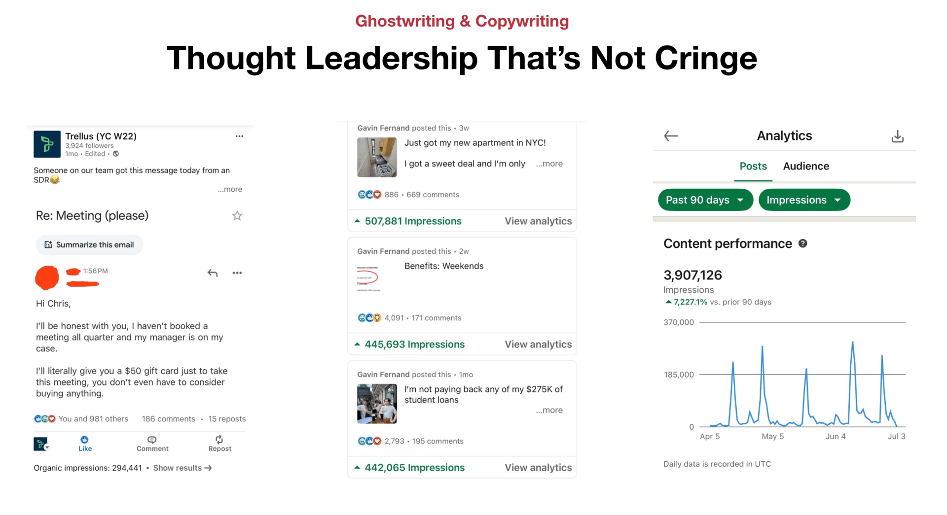 We write copy on LinkedIn/X that sounds like it came from a human, not some AI slop. People actually read it instead of scrolling past.