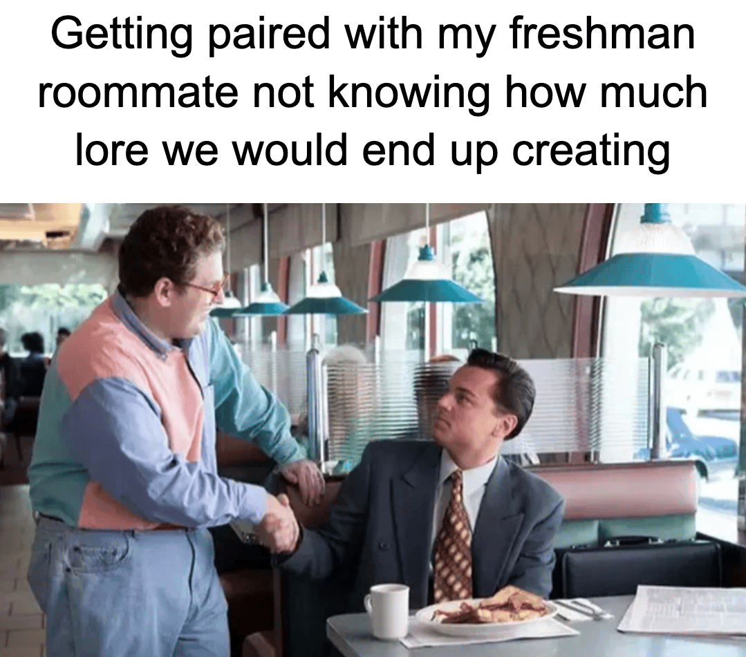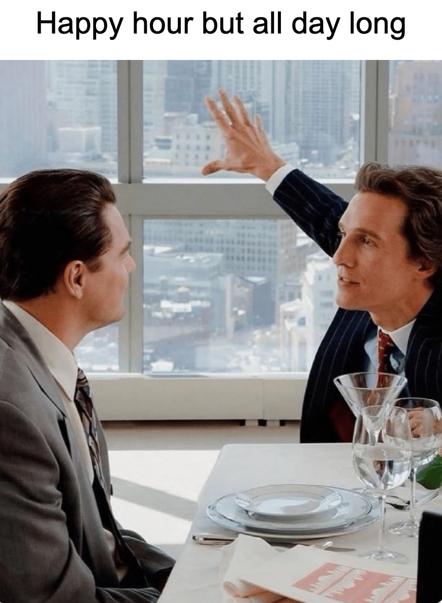 This meme is used for meeting someone or starting something new. Knowing the lore behind the photo makes it 10x better since this is from the scene in The Wolf of Wall Street where Jordy (leo) meets Donnie (Jonah) and kicks off the friendship of a lifetime